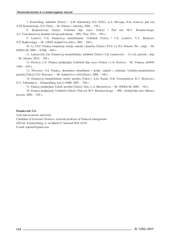 9. Леонтьев, В.Е. Финансовый менеджмент: Учебник /В.Е. Леонтьев, В.В. Бочаров, Н.П. Радковская. -М.: «ООО «Издательство Элит», 2005. -560 с. EDN: QQHYKV
