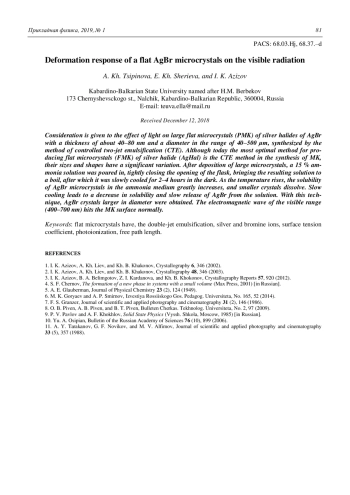 Ципинова А. Х., Шериева Э. Х., Азизов И. К. Деформационный отклик плоских микрокристаллов галогенида серебра AgBr на излучение видимого спектра 77