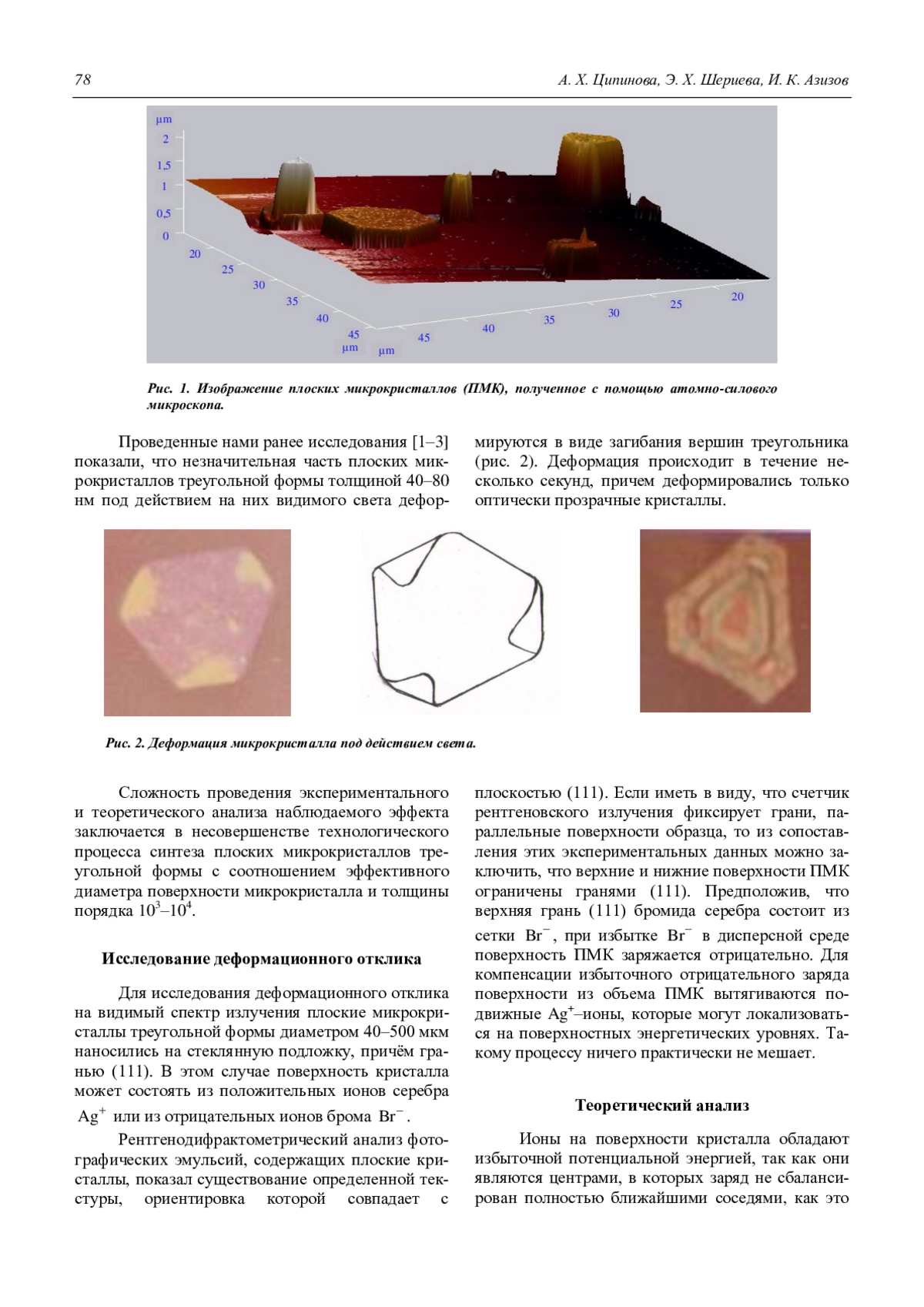 A. Kh. Tsipinova, E. Kh. Sherieva, and I. K. Azizov Deformation response of a flat AgBr microcrystals on the visible radiation 77