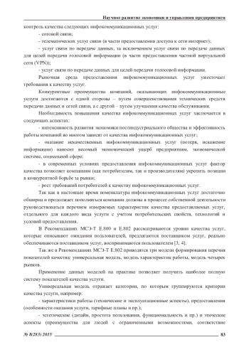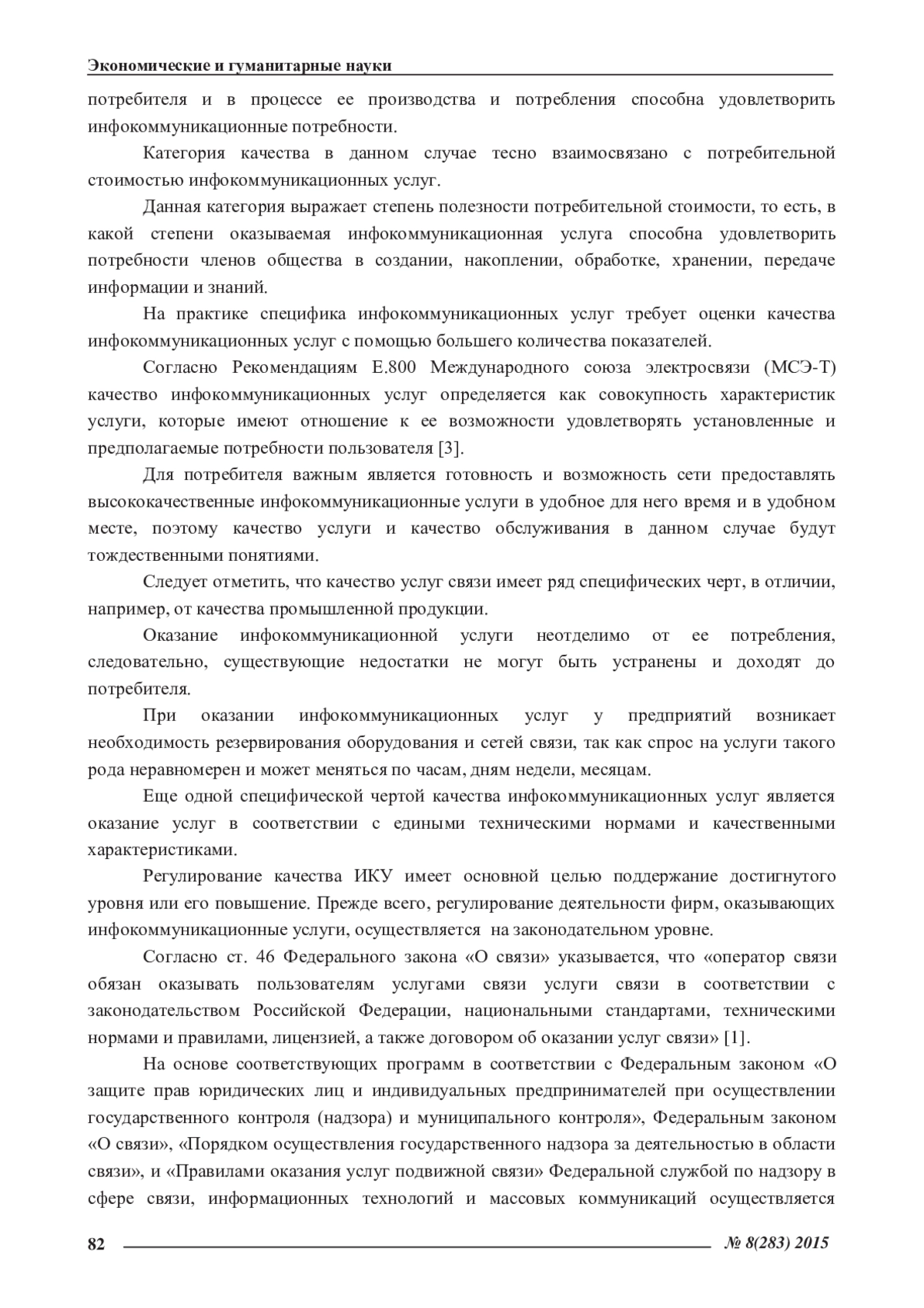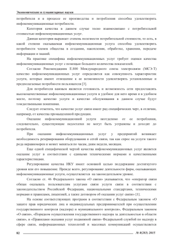 В информационном обществе качество инфокоммуникационных услуг обладает особой социально-экономической значимостью. Прогрессивное развитие информационного общества напрямую зависит от качества предоставляемых инфокоммуникационных услуг, которое представляет собой материальную основу удовлетворения производственных и личных потребностей общества в хранении, обработке, накоплении и передачи информации и знаний