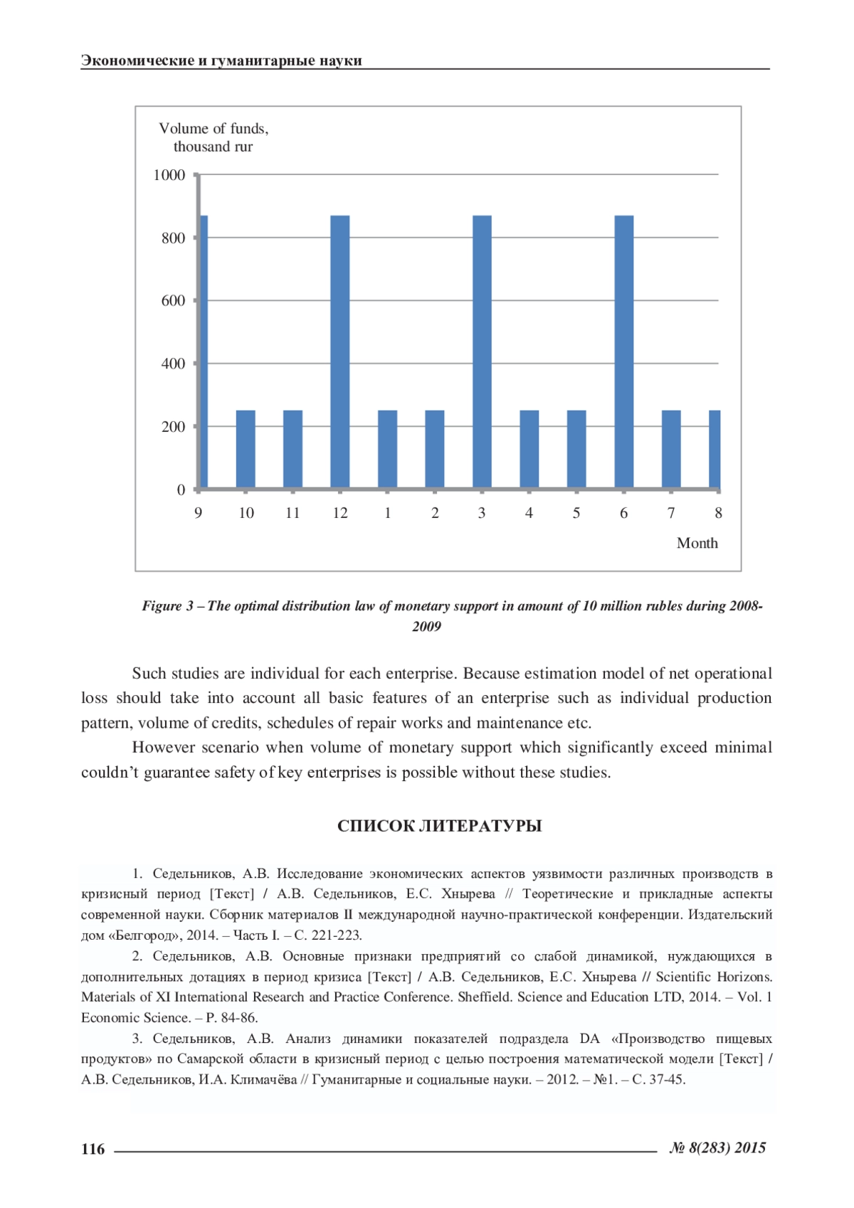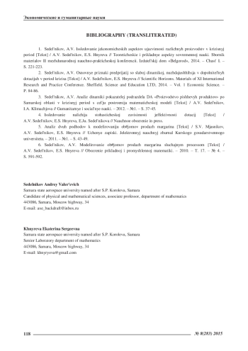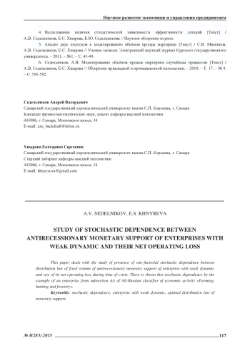 1. Седельников, А.В. Исследование экономических аспектов уязвимости различных производств в кризисный период /А.В. Седельников, Е.С. Хнырева//Теоретические и прикладные аспекты современной науки. Сборник материалов II международной научно-практической конференции. Издательский дом «Белгород», 2014. -Часть I. -С. 221-223. EDN: TBWOPN