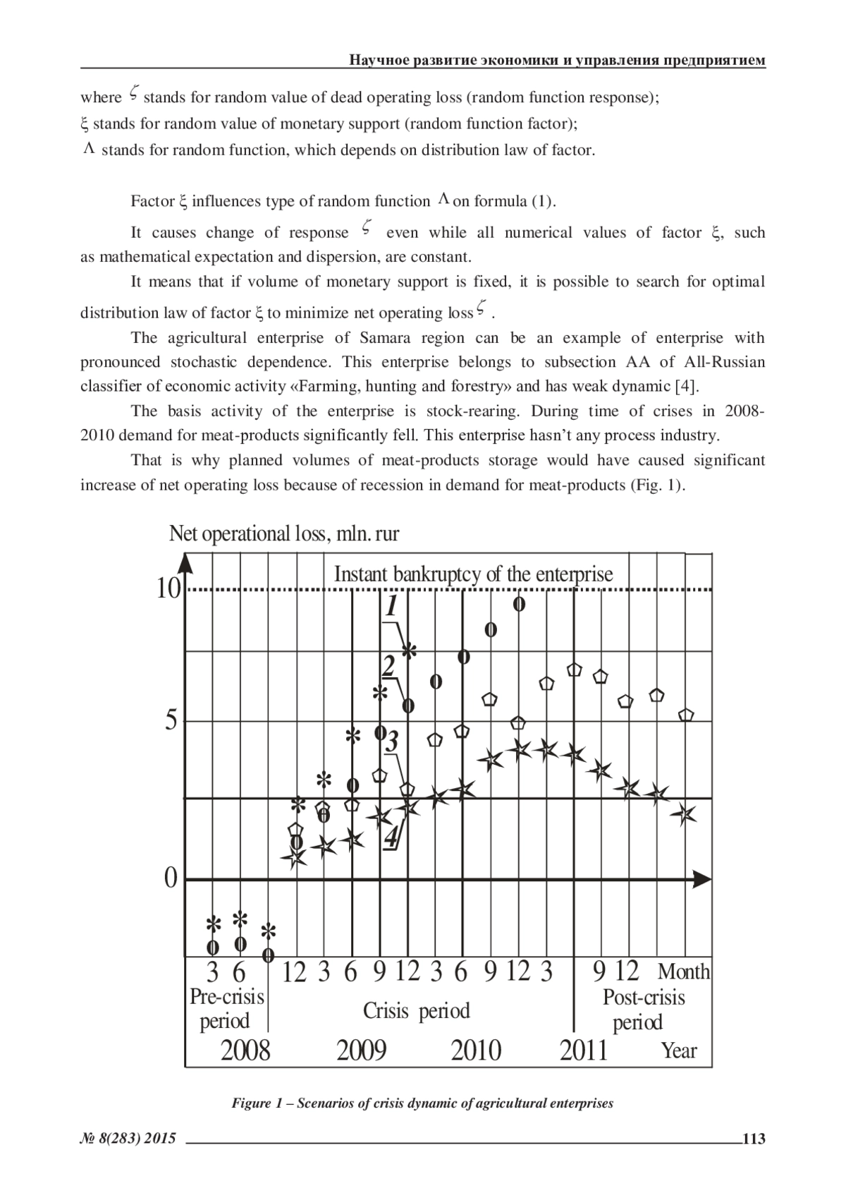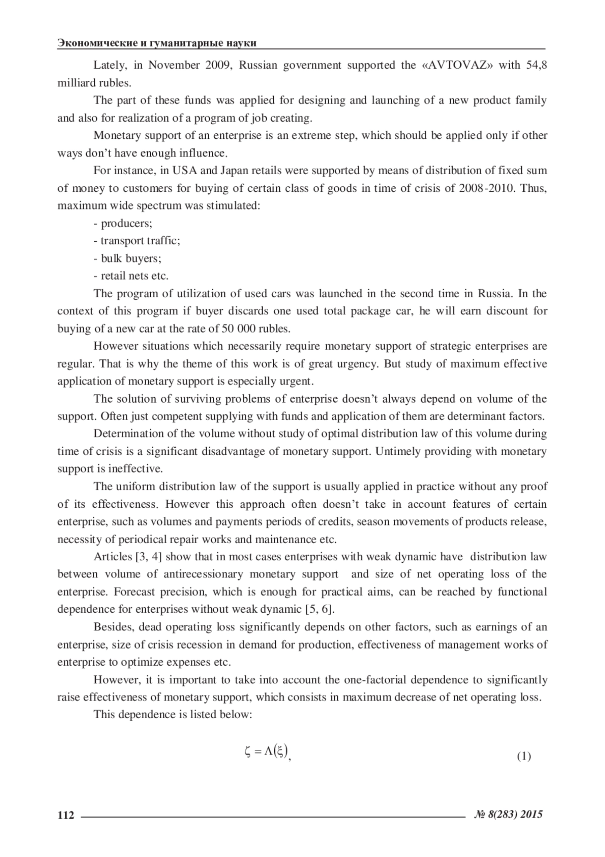 Исследуется наличие однофакторной стохастической зависимости между законом распределения фиксированного объёма антикризисной монетарной поддержки предприятий со слабой динамикой и величиной его чистого операционного убытка в кризисный период. Показано наличие такой стохастической зависимости на примере предприятия подраздела АA общероссийского классификатора видов экономической деятельности «Сельское хозяйство, охота и лесное хозяйство».