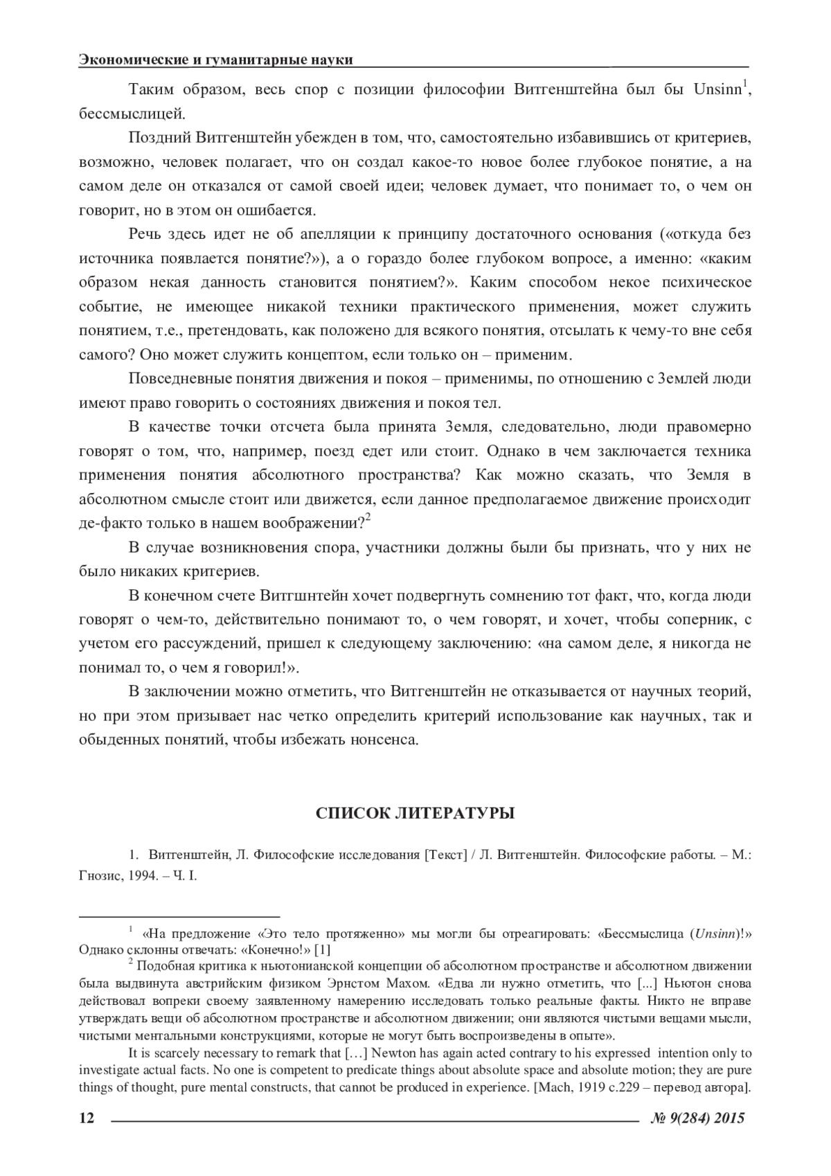 Статья: ВЕРИФИКАЦИОНИЗМ: ПРОБЛЕМА ДЕМАРКАЦИИ ОСМЫСЛЕННОГО И БЕССМЫСЛЕННОГО (2015)