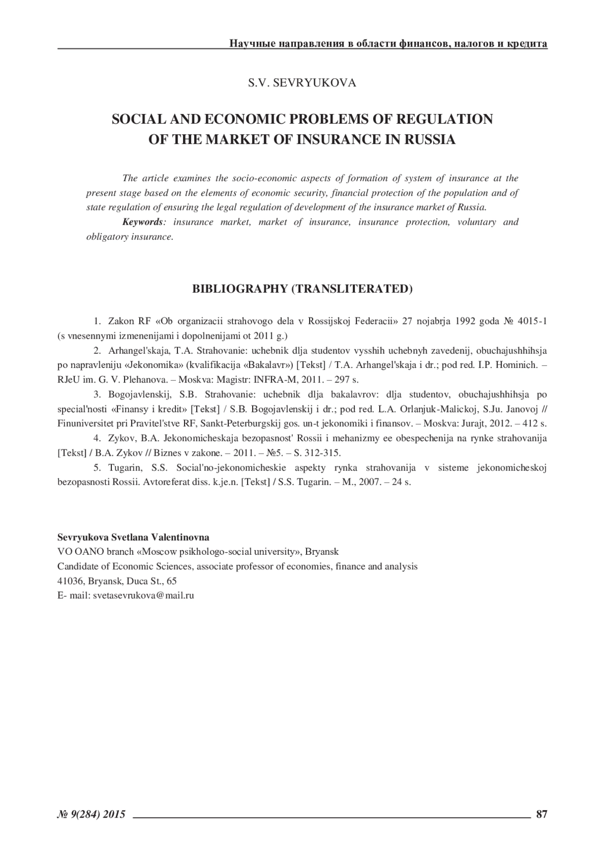 Статья рассматривает социально-экономические аспекты формирования системы страхования на современном этапе с учетом элементов экономической безопасности, финансовой защиты населения и регулирования государством вопросов обеспечения правового регулирования и развития рынка страхования России