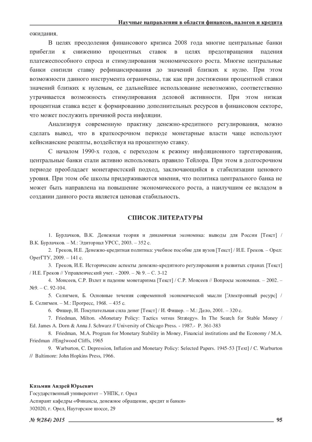 2. Греков, И.Е. Денежно-кредитная политика: учебное пособие для вузов [Текст] / И.Е. Греков. - Орел: ОрегГТУ, 2009. - 141 с.