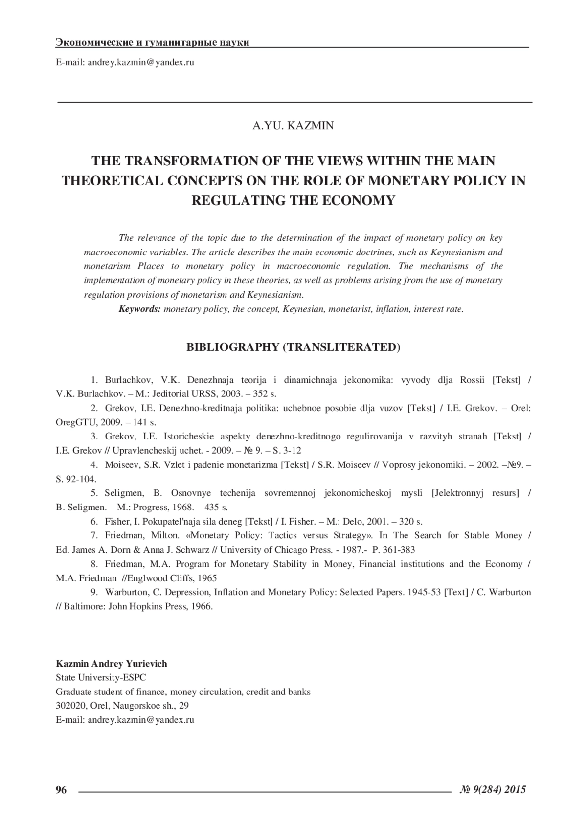 4. Моисеев, С.Р. Взлет и падение монетаризма [Текст] / С.Р. Моисеев // Вопросы экономики. - 2002. - №9. - С. 92-104.