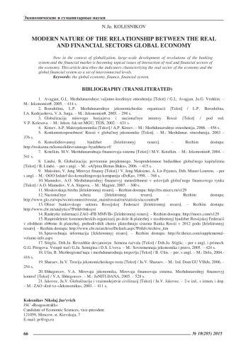 1. Авагян, Г.Л. Международные валютно-кредитные отношения [Текст] / Г.Л. Авагян, Ю.Г. Вешкин. М.: Экономисть, 2005. - 414 с. EDN: QQJVVB