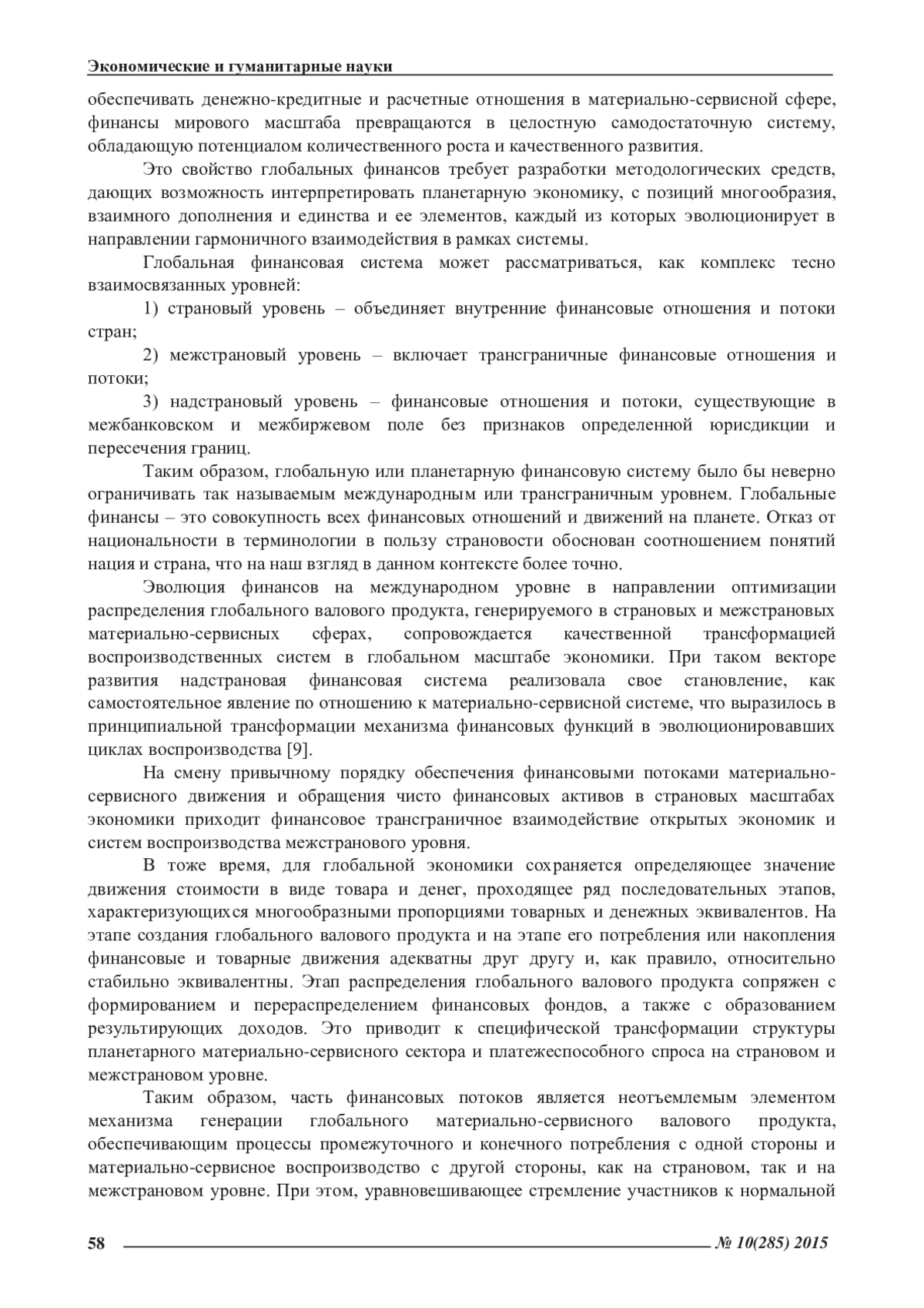 В процессе своей эволюции экономика глобального уровня формируется во многом стихийно, но, тем не менее, по принципам развития целостной системы. Развивая эту концепцию необходимо постоянно учитывать, что с административной точки зрения глобальный экономический уровень формируется из зависимых функционально экономических систем странового уровня. Однако, рассматривая глобальную экономику в отраслевом разрезе, объективно можно наблюдать глобальную финансовую систему с банковской и биржевой подсистемами и глобальный мезоуровень – межстрановое производство