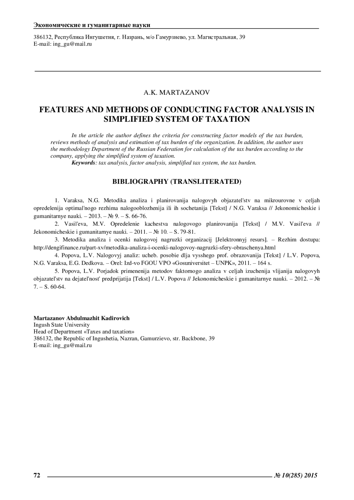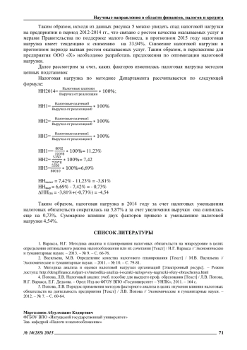 1. Варакса, Н.Г. Методика анализа и планирования налоговых обязательств на микроуровне в целях определения оптимального режима налогообложения или их сочетания [Текст] / Н.Г. Варакса // Экономические и гуманитарные науки. - 2013. - № 9. - С. 66-76. EDN: RVWQPN