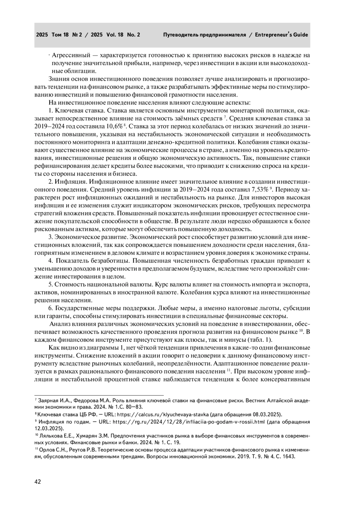 7. Заярная И.А., Федорова М.А. Роль влияния ключевой ставки на финансовые риски. Вестник Алтайской академии экономики и права. 2024. № 1. С. 80-83.