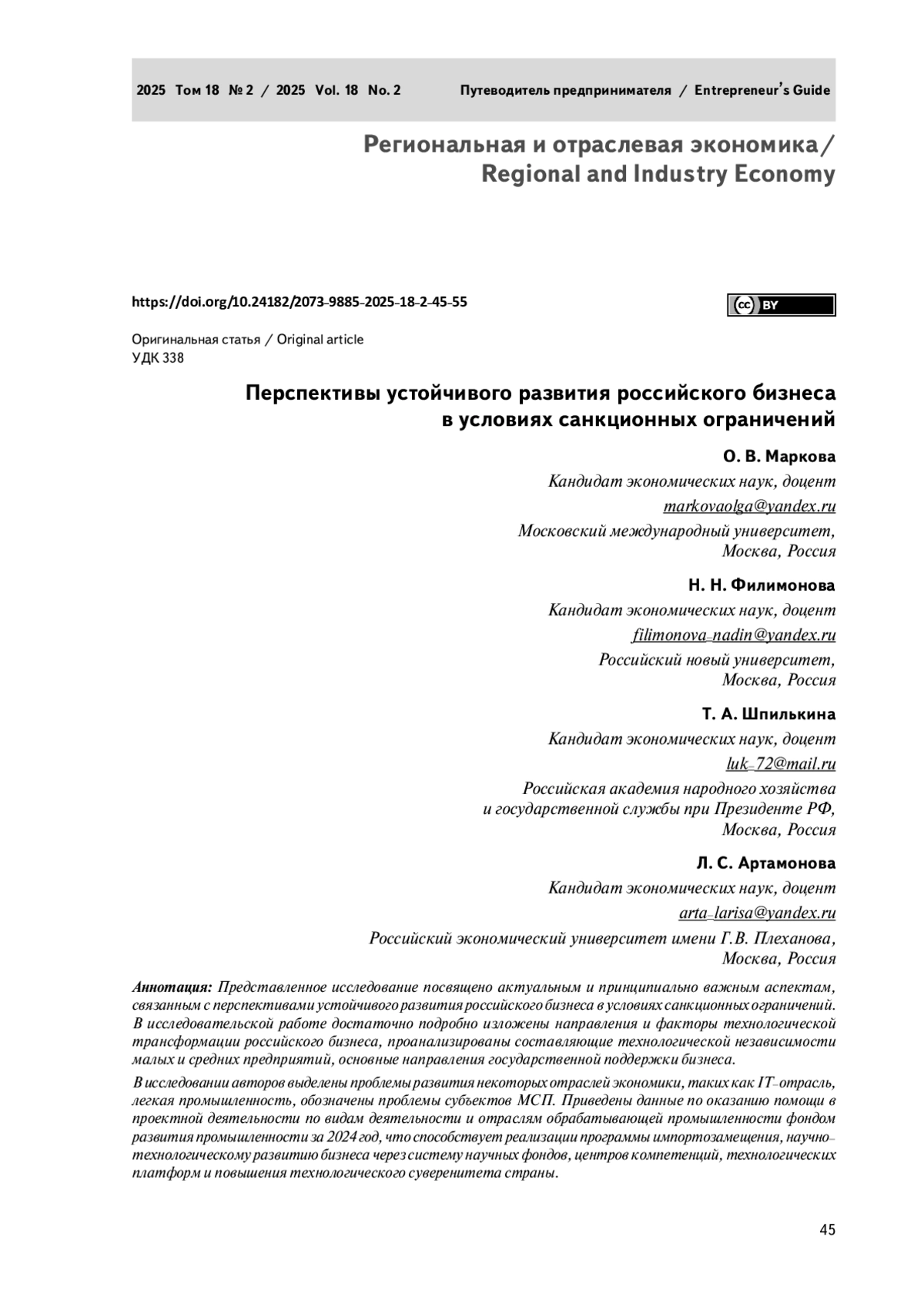 - 10.24182/2073-9885-2025-18-2-45-55