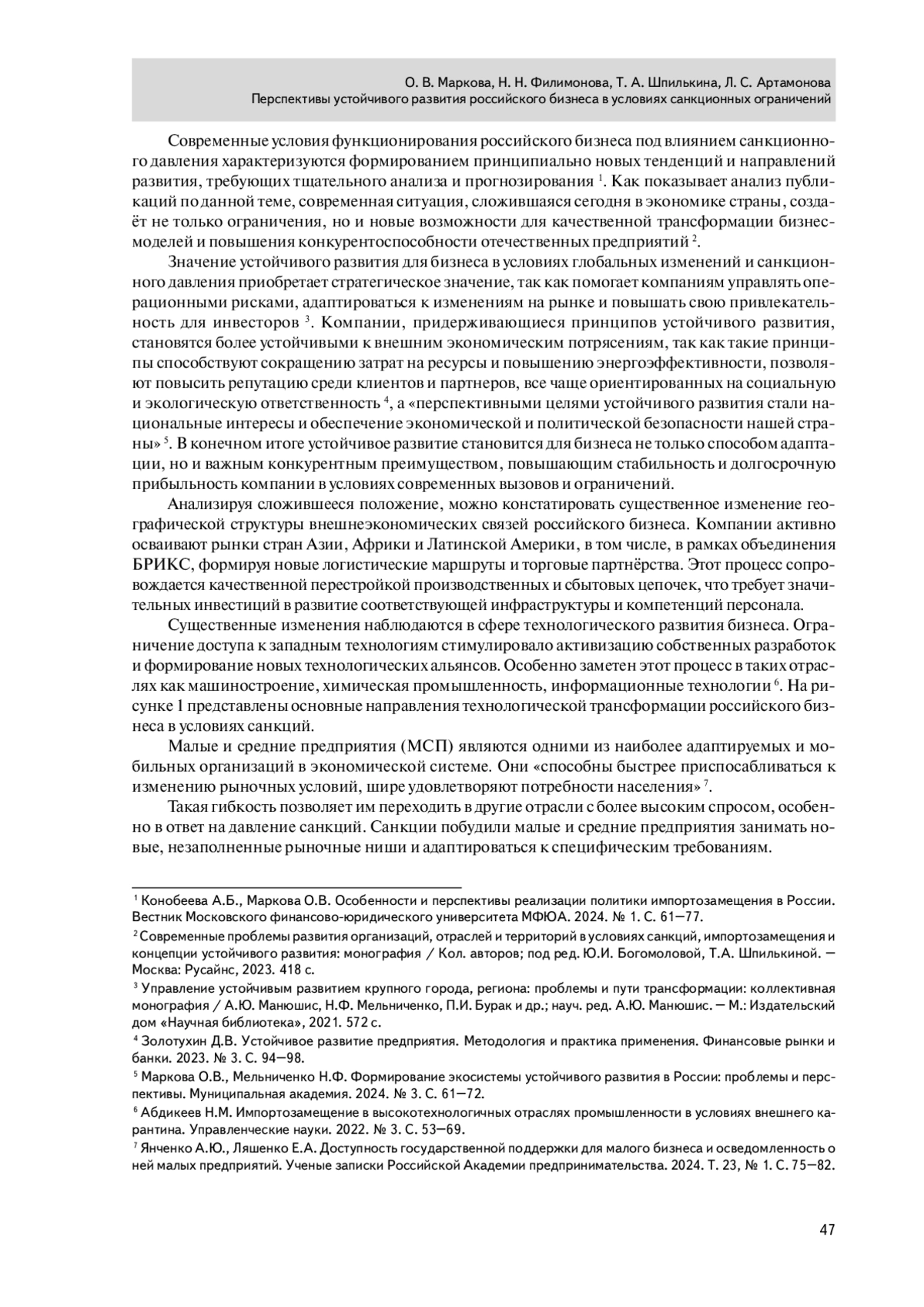 4. Конобеева А.Б., Маркова О.В. Особенности и перспективы реализации политики импортозамещения в России. Вестник Московского финансовоюридического университета МФЮА. 2024. № 1. С. 61-77.