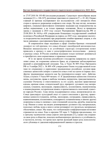 Статья: МЕДИАЦИЯ В СЕМЕЙНОМ МИКРОСОЦИУМЕ: СОЦИАЛЬНО-ФИЛОСОФСКИЙ АСПЕКТ (2025)