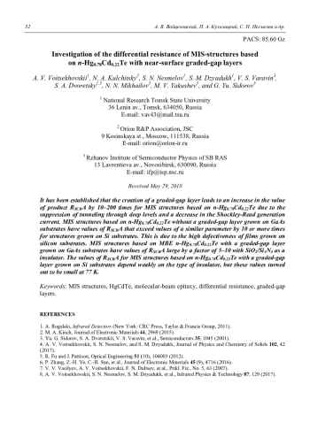 4. Voitsekhovskii A. V., Nesmelov S. N., Dzyadukh S. M. // Journal of Physics and Chemistry of Solids. 2017. Vol. 102. P. 42.