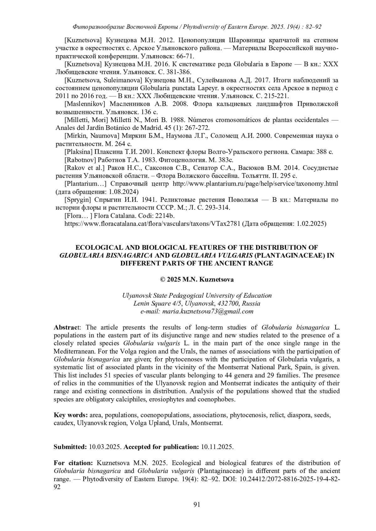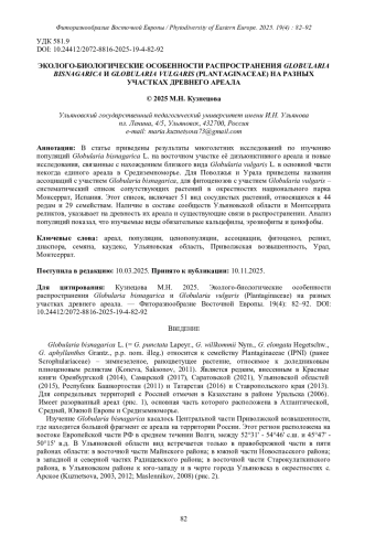 11. [Kuznetsova] Кузнецова М.Н. 2016. К систематике рода Globularia в Европе - В кн.: XXX Любищевские чтения. Ульяновск. С. 381-386.