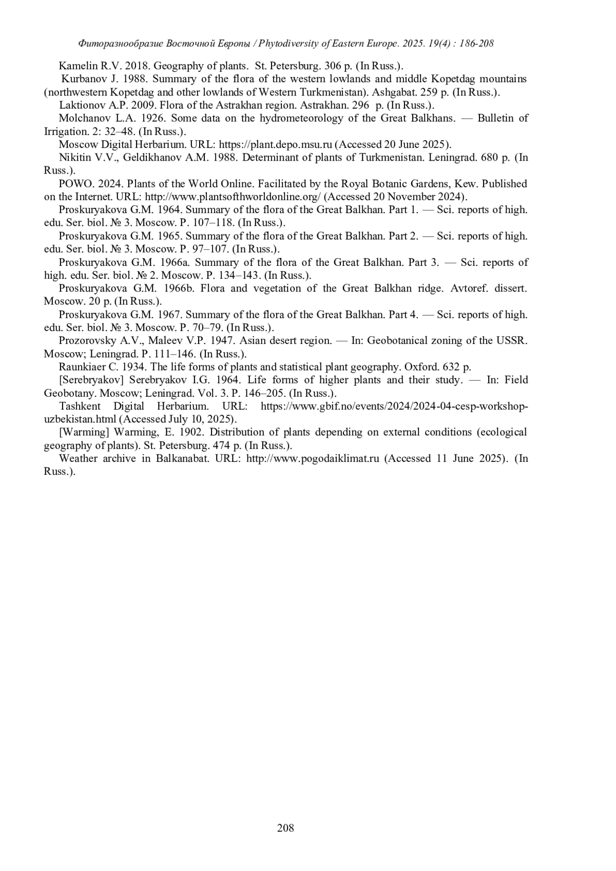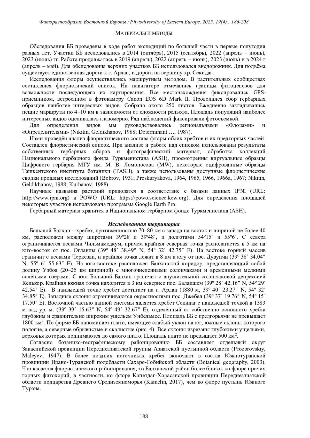 Статья: СОВРЕМЕННОЕ СОСТОЯНИЕ ФЛОРЫ ХРЕБТА БОЛЬШОЙ БАЛХАН (ТУРКМЕНИСТАН) (2025)
