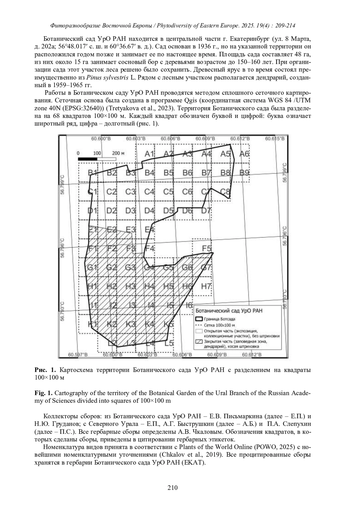 18. [Tretyakova et al.] Третьякова А.С., Письмаркина Е.В., Груданов Н.Ю., Забужко Д.Э. 2023. Состав и инвазионная активность древесно-кустарниковых интродуцентов в Ботаническом саду УрО РАН. - Сибирский лесной журнал. 5: 68-74. DOI: 10.15372/SJFS20230509 EDN: ZSRBIJ
