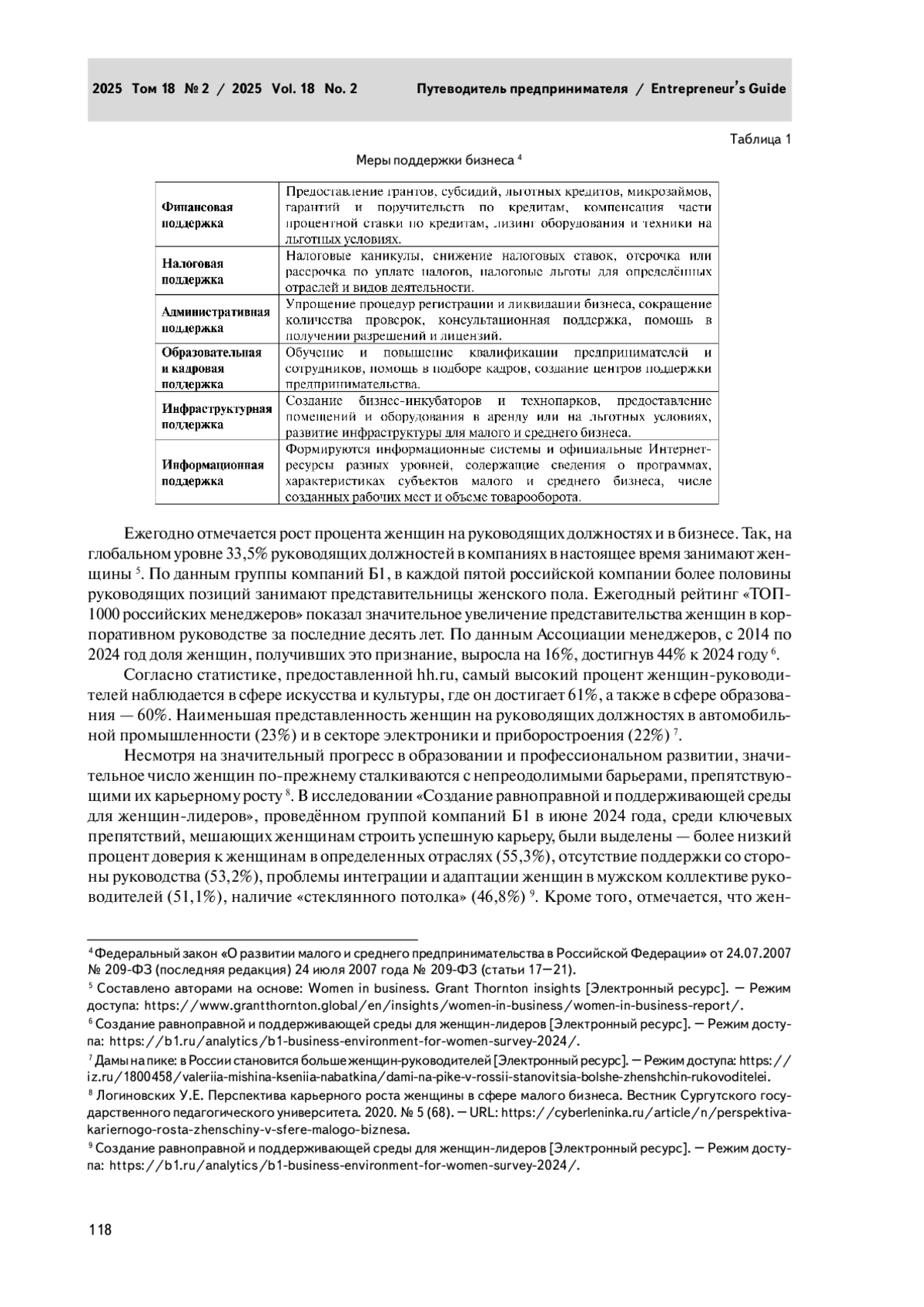 8. Логиновских У.Е. Перспектива карьерного роста женщины в сфере малого бизнеса. Вестник Сургутского государственного педагогического университета. 2020. № 5 (68). - URL: https://cyberleninka.ru/article/n/perspektiva-kariernogo-rosta-zhenschiny-v-sfere-malogo-biznesa.