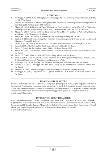 5. Марсель Г. О смелости в метафизике: сборник статей / сост., пер. с фр. В. П. Визгина. СПб.: Наука, 2013. 411 с.