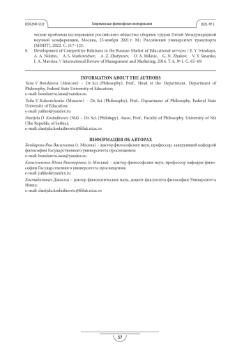 8. Development of Competitive Relations in the Russian Market of Educational services / E. Y. Ivinskaya, A. A. Nikitin, A. S. Markovichev, A. Z. Zhafyarov, O. A. Milinis, G. N. Zhukov, V. Y. Sinenko, I. A. Mavrina // International Review of Management and Marketing. 2016. Т. 6. № 1. С. 65-69.