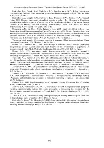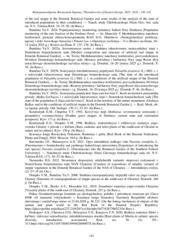 Статья: СОСТОЯНИЕ ИНТРОДУКЦИОННЫХ ПОПУЛЯЦИЙ НЕКОТОРЫХ РАРИТЕТНЫХ ВИДОВ В УСЛОВИЯХ ТИПИЧНОЙ ИСКУССТВЕННОЙ СТЕПИ В ДОНЕЦКОМ БОТАНИЧЕСКОМ САДУ (2025)