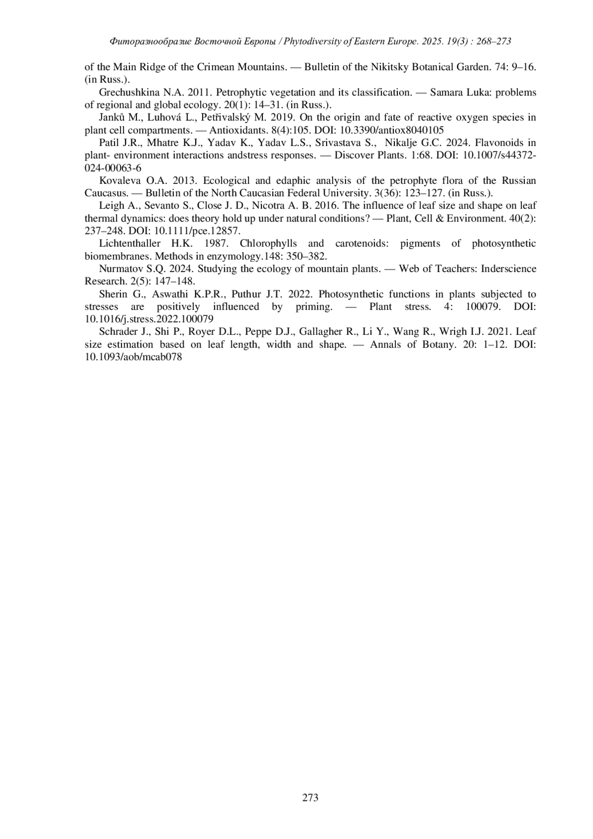 9. Patil J.R., Mhatre K.J., Yadav K., Yadav L.S., Srivastava S., Nikalje G.C. 2024. Flavonoids in plant- environment interactions andstress responses. - Discover Plants. 1: 68. DOI: 10.1007/s44372-024-00063-6 EDN: KEMPGZ
