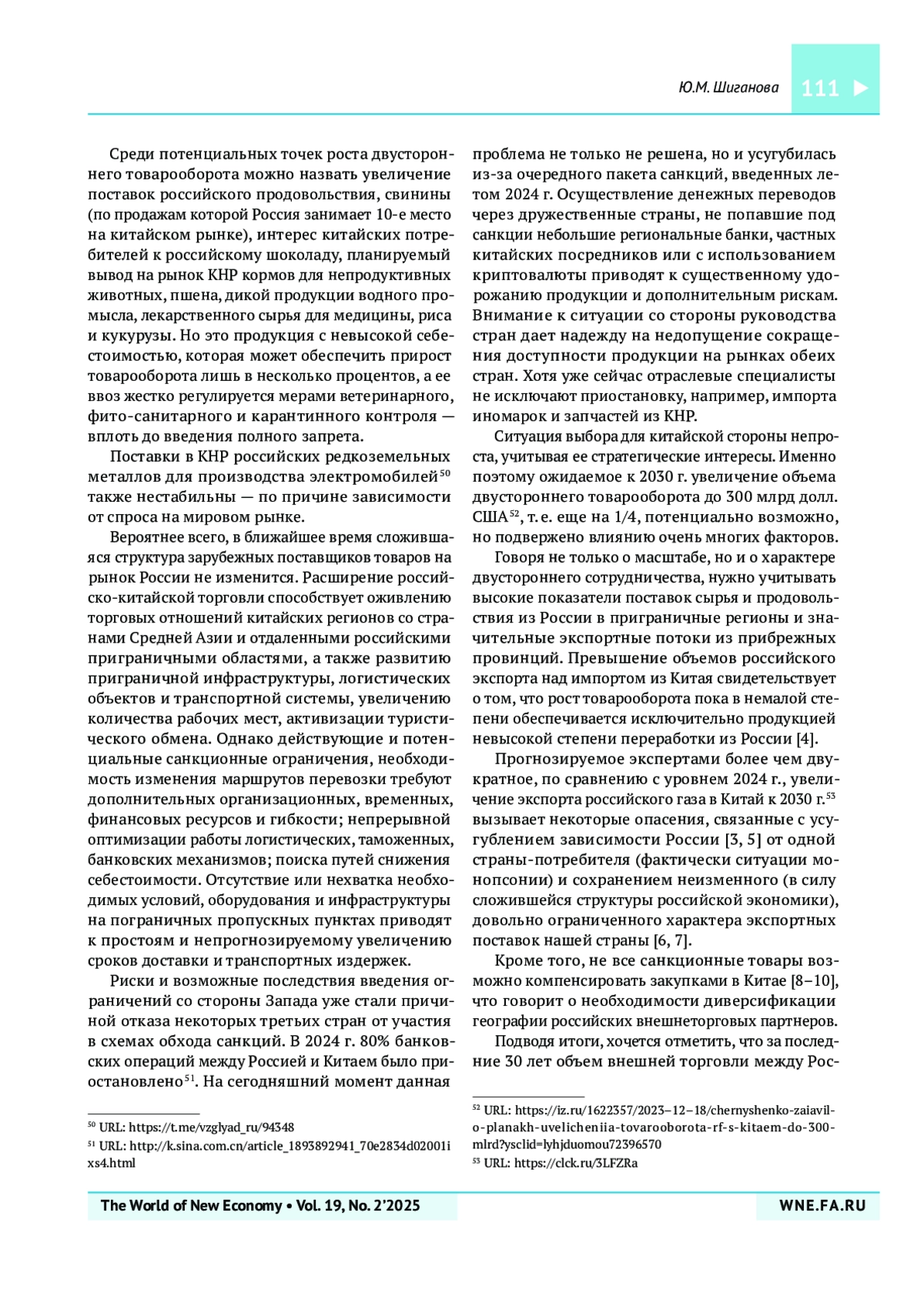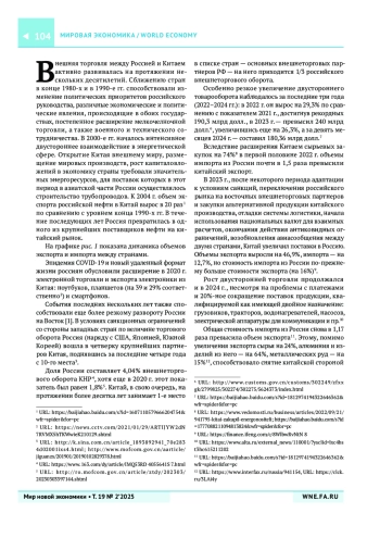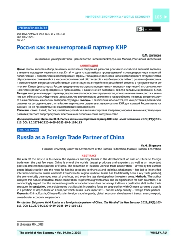 10. Seniuk N.U. Russian-Chinese trade: Current trends and prospects. Baltic RIM Economies. 2022;(4):48-49. URL: https://sites.utu.fi/bre/russian-chinese-trade-current-trends-and-prospects