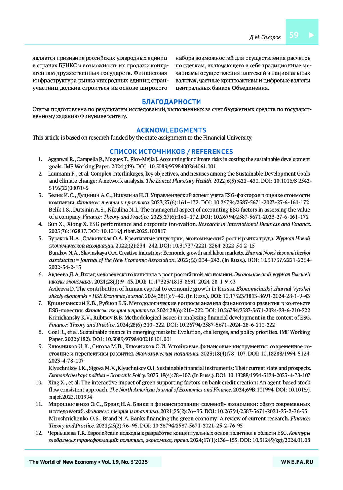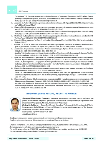 7. Криничанский К.В., Рубцов Б.Б. Методологические вопросы анализа финансового развития в контексте ESG-повестки. Финансы: теория и практика. 2024;28(6):210-222. https://doi.org/10.26794/2587-5671-2024-28-6-210-222