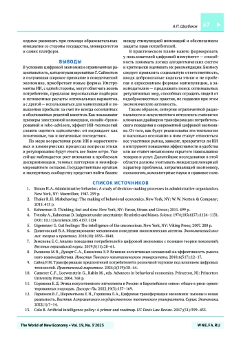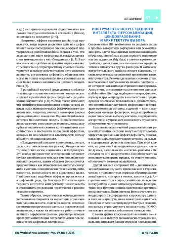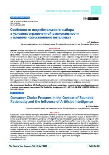Предмет. В статье рассматривается влияние феномена ограниченной рациональности на поведение потребителей и то, как современные технологии искусственного интеллекта (ИИ) меняют процесс принятия экономических решений.