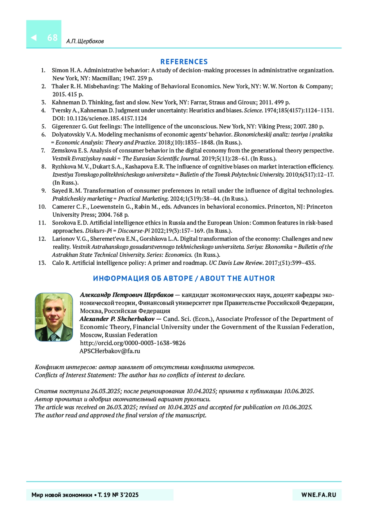 10. Camerer C.F., Loewenstein G., Rabin M., eds. Advances in behavioral economics. Princeton, NJ: Princeton University Press; 2004. 768 p.