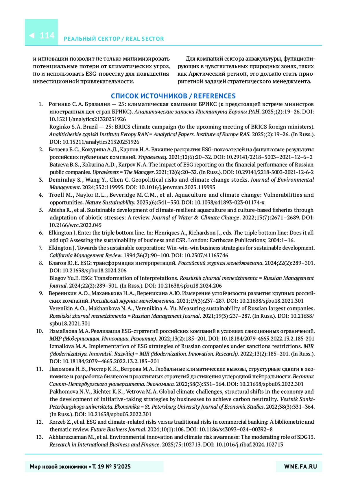 16. Duan D., et al. Opportunity or obstacle? Climate risk disclosure and corporate ESG performance. International Review of Economics & Finance. 2025;100:104101. https://doi.org/10.1016/j.iref.2025.104101