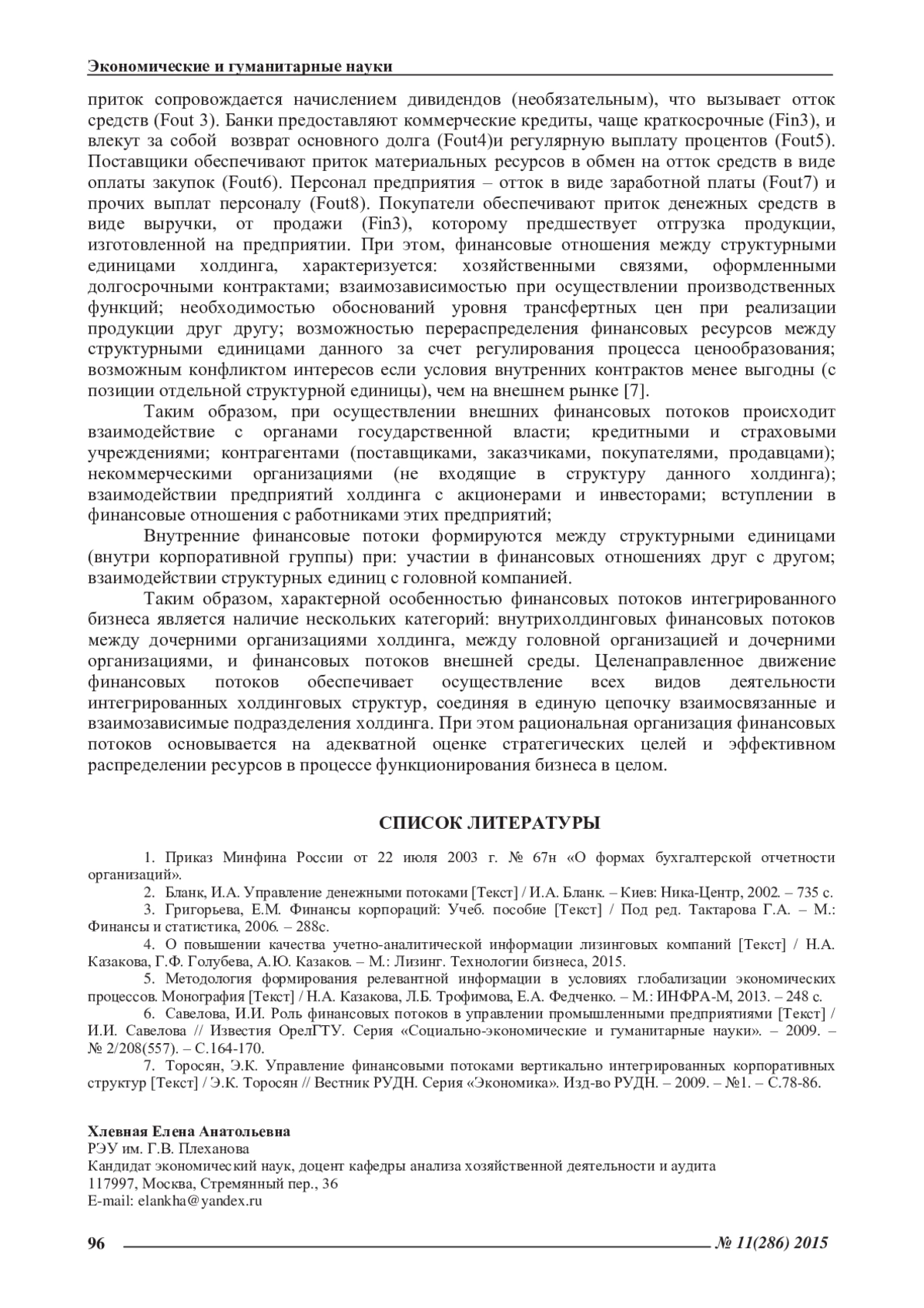 6. Савелова, И.И. Роль финансовых потоков в управлении промышленными предприятиями [Текст] / И.И. Савелова // Известия ОрелГТУ. Серия «Социально-экономические и гуманитарные науки». - 2009. - № 2/208(557). - С.164-170.