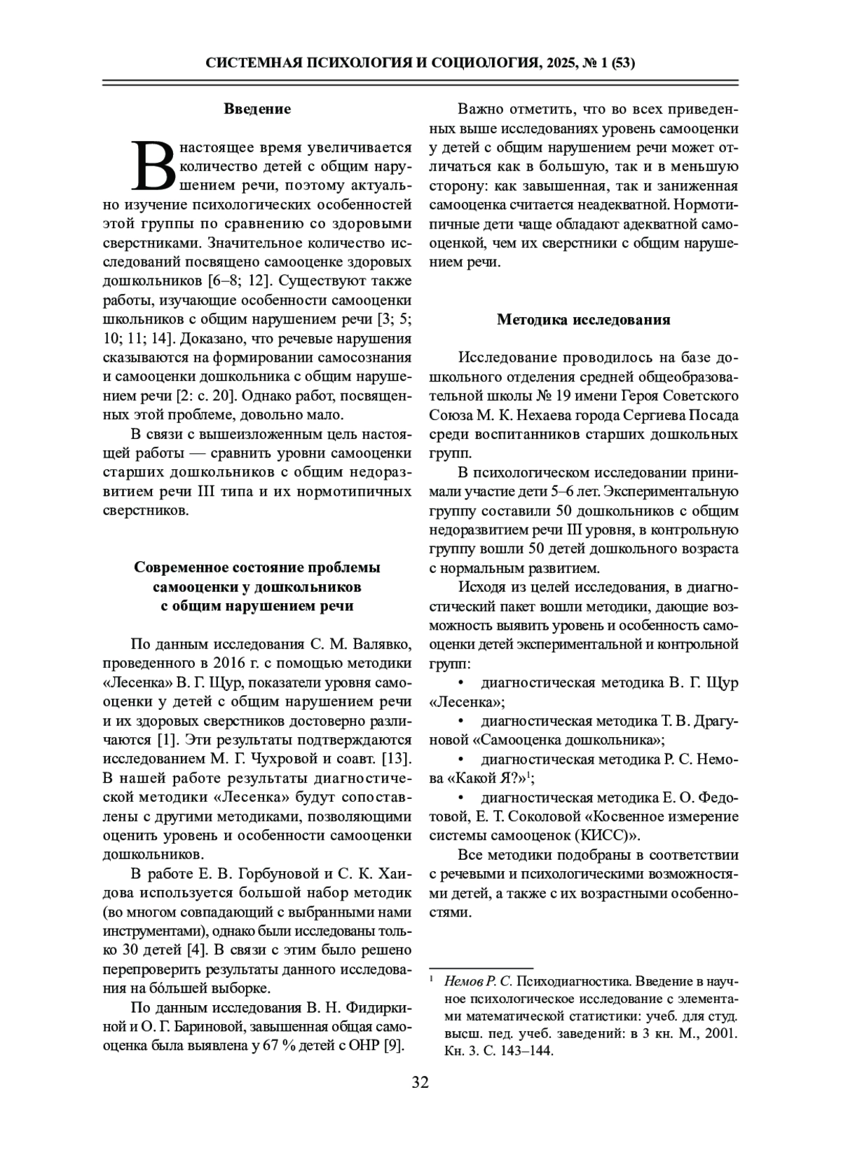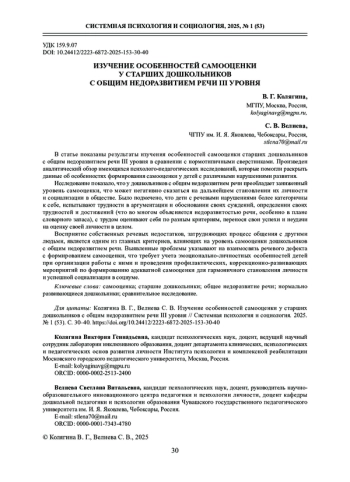 1. Валявко С. М. Анализ формирования самооценки старших дошкольников // Системная психология и социология. 2016. № 3 (19). С. 5-11. download/elibrary_27205776_50735604.pdf. EDN: WXIYHZ