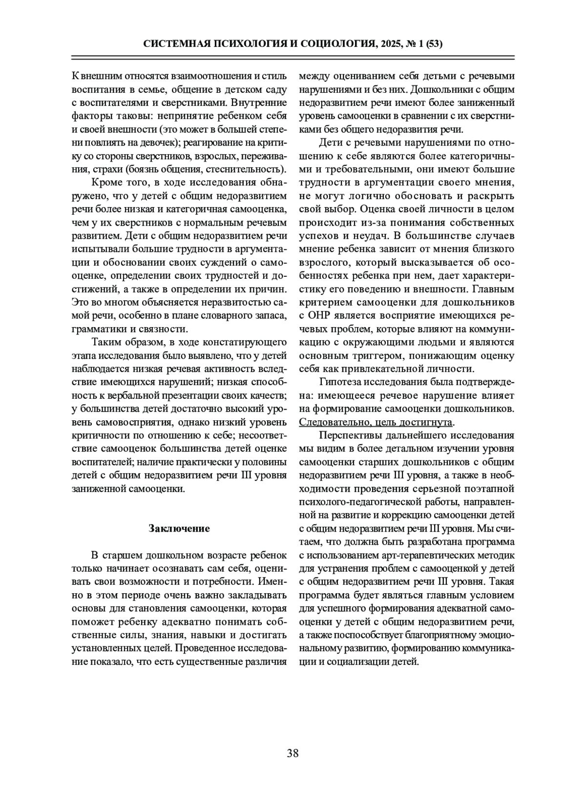 Восприятие собственных речевых недостатков, затрудняющих процесс общения с другими людьми, является одним из главных критериев, влияющих на уровень самооценки дошкольников с общим недоразвитием речи. Выявленные проблемы указывают на взаимосвязь речевого дефекта с формированием самооценки, что требует учета эмоционально-личностных особенностей детей при организации работы с ними и проведения профилактических, коррекционно-развивающих мероприятий по формированию адекватной самооценки для гармоничного становления личности и успешной социализации в социуме.