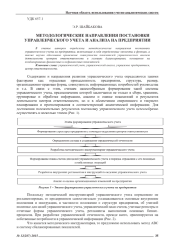 В статье автором определены методологические направления постановки управленческого учета на предприятии, включающие в себя определенные элементы и функции, а также научно обосновано применение совокупности показателей управленческого анализа деятельности центров ответственности в условиях балансирования, основанное на комбинировании финансовых и нефинансовых показателей