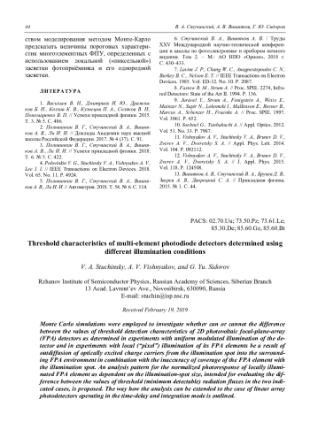 V. A. Stuchinsky, A. V. Vishnyakov, and G. Yu. Sidorov Threshold characteristics of multi-element photodiode detectors determined using different illumination conditions 39