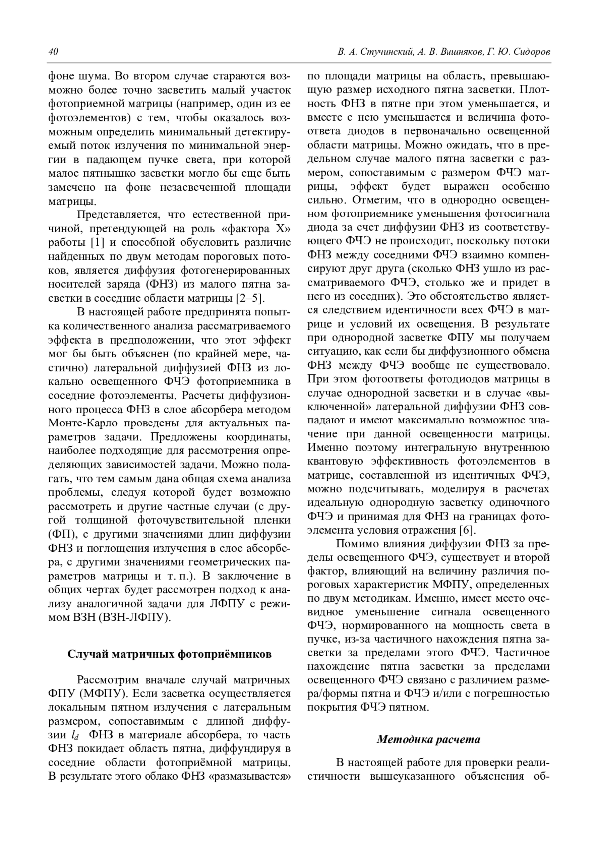 Стучинский В. А., Вишняков А. В., Сидоров Г. Ю. Пороговые характеристики многоэлементных фотодиодных ФПУ, определенные с ис-пользованием различных методов засветки 39
