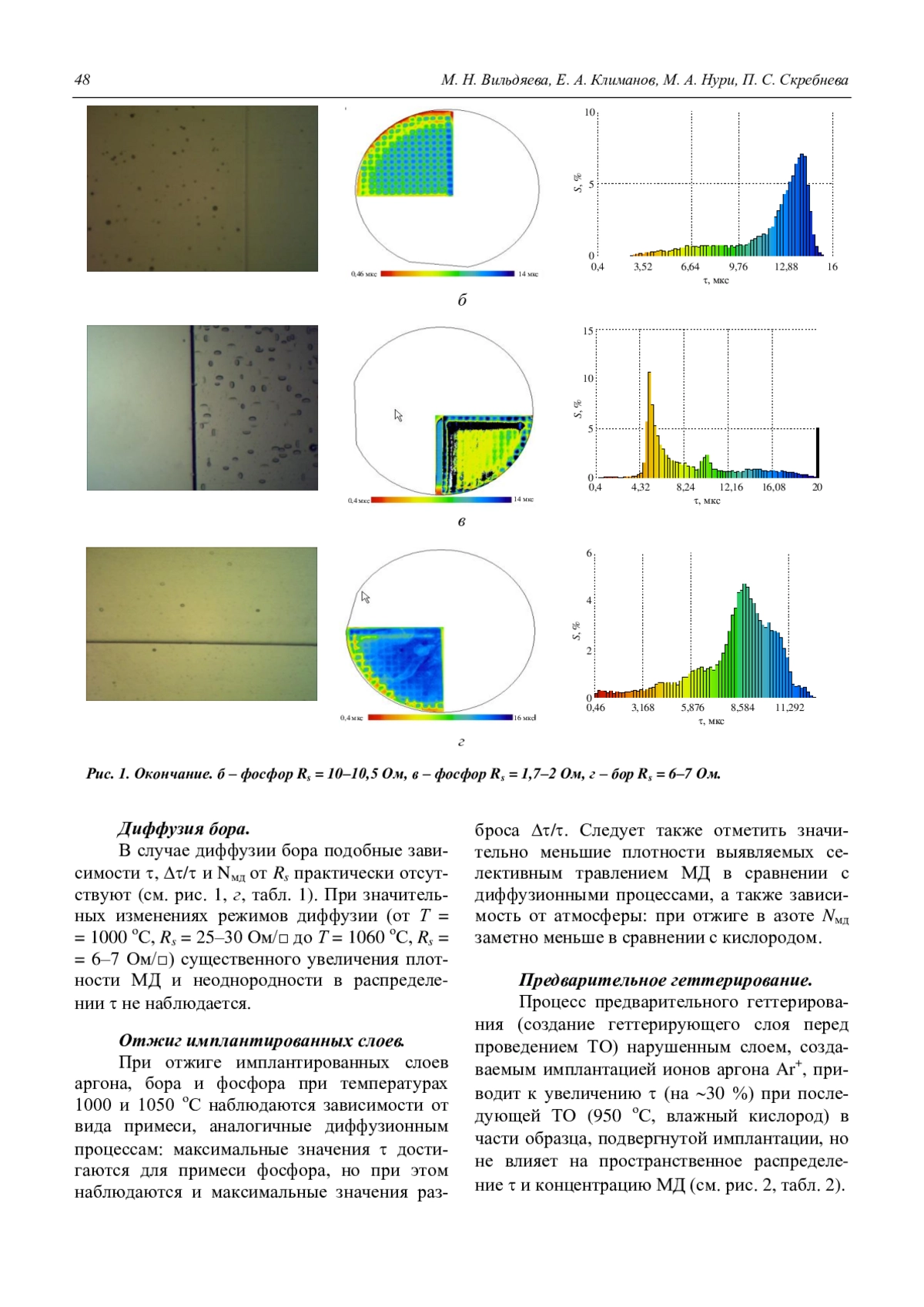 Вильдяева М. Н., Климанов Е. А., Нури М. А., Скребнева П. С. Влияние режимов диффузионных процессов на время жизни неосновных носителей за-ряда в кремнии, выращенном методом Чохральского 46