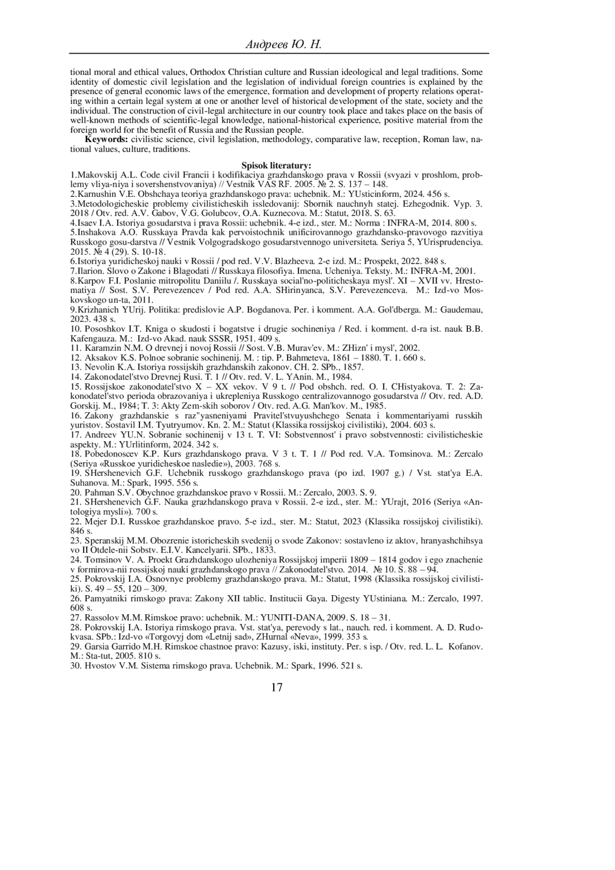 24. Томсинов В. А. Проект Гражданского уложения Российской империи 1809 - 1814 годов и его значение в формировании российской науки гражданского права // Законодательство. 2014. №10. С.88-94.