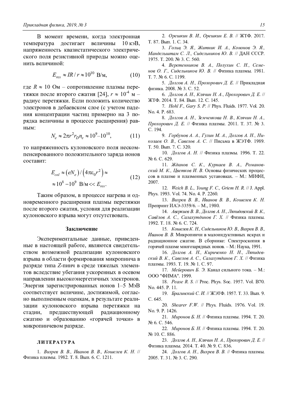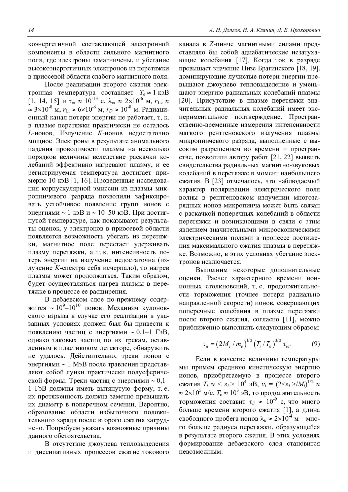 8. Долгов А. Н., Земченкова Н. В., Клячин Н. А., Прохорович Д. Е. // Физика плазмы. 2011. Т. 37. № 3. С. 194.