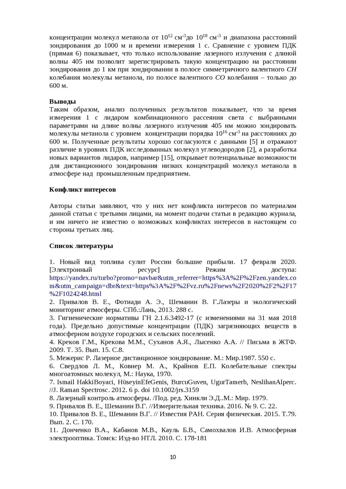 10. Привалов В. Е., Шеманин В.Г. // Известия РАН. Серия физическая. 2015. Т.79. Вып. 2. С. 170.