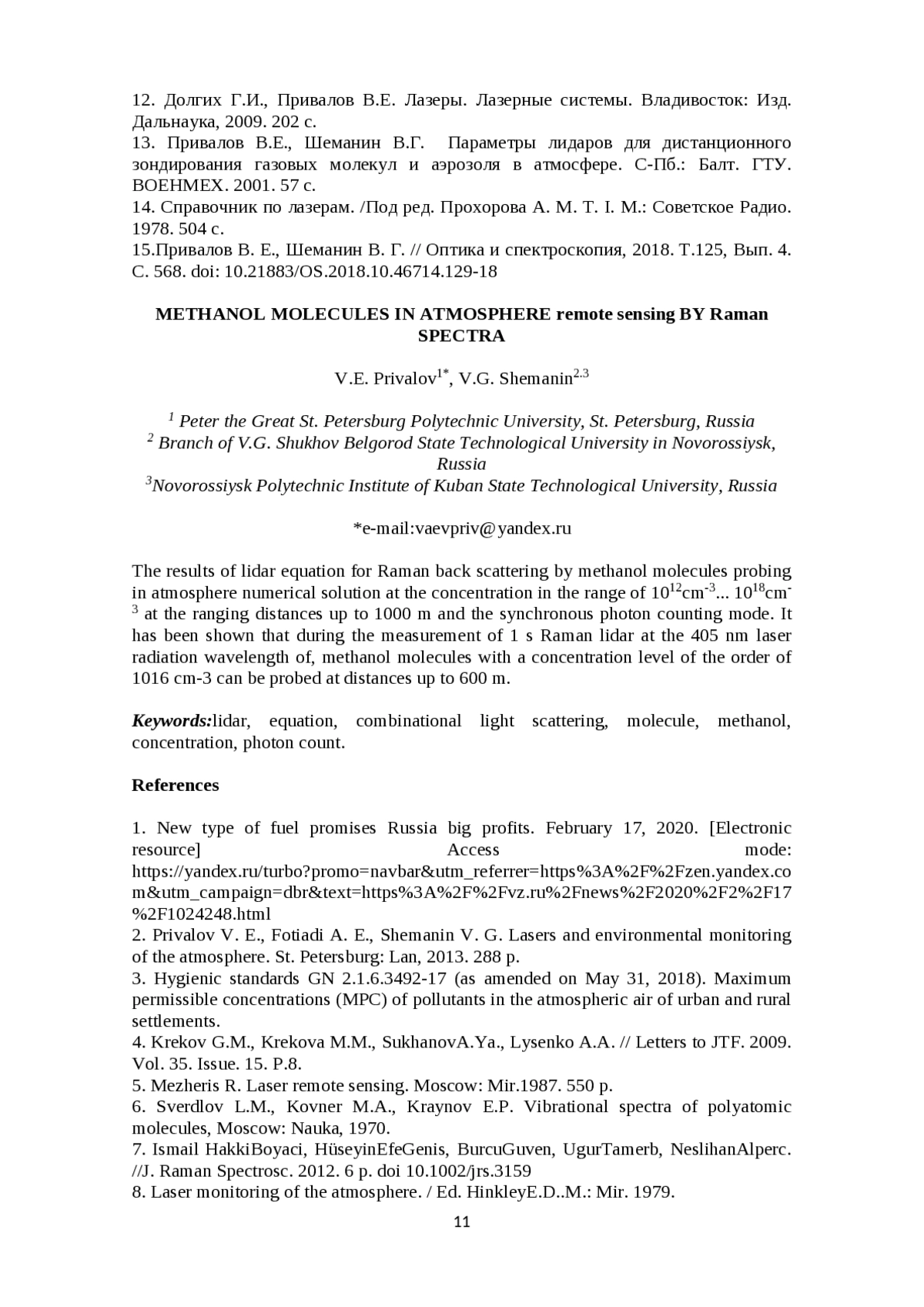 15. Привалов В. Е., Шеманин В. Г. // Оптика и спектроскопия, 2018. Т.125, Вып. 4. С. 568.