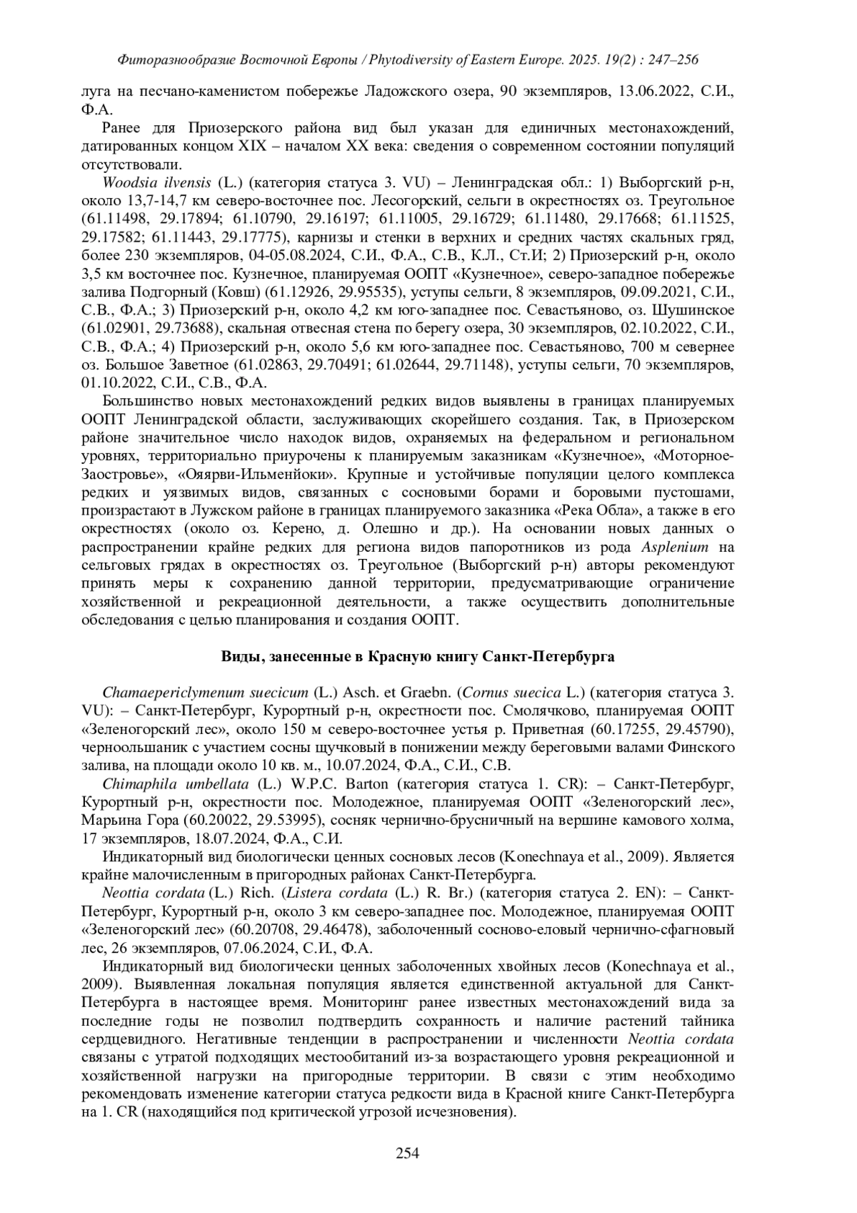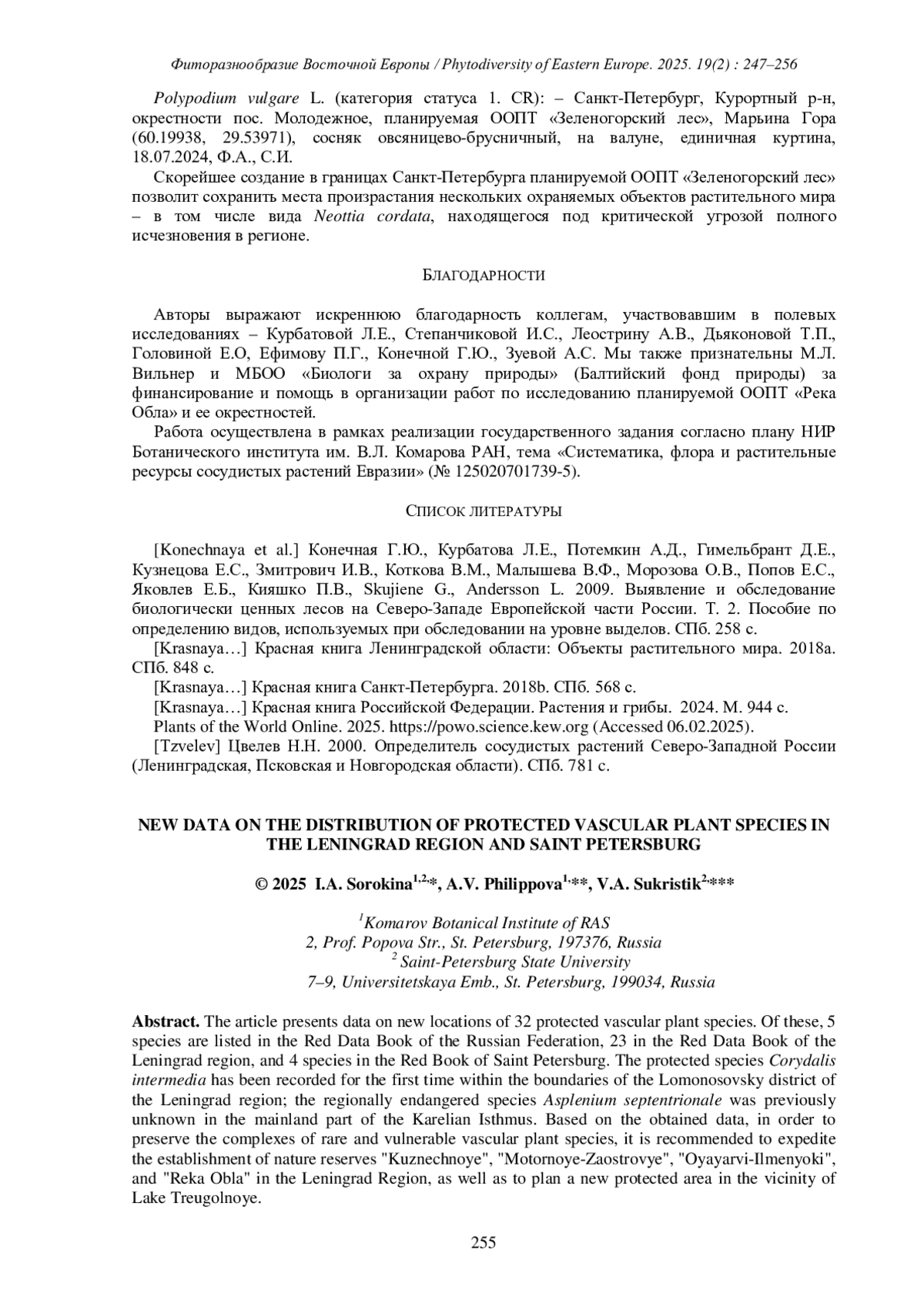 3. [Krasnaya…] Красная книга Санкт-Петербурга. 2018b. СПб. 568 с. [Krasnaya…] Красная книга Российской Федерации. Растения и грибы. 2024. М. 944 с.