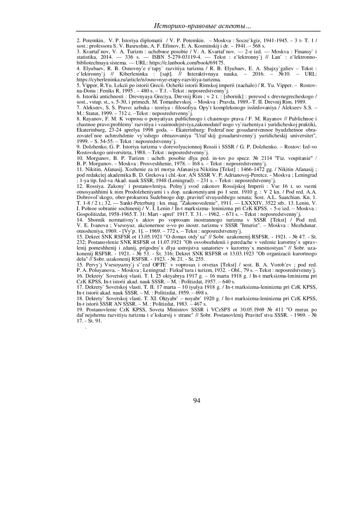 4. Елюбаев, Р. Б. Основные этапы развития туризма / Р. Б. Елюбаев, Е. А. Шайхыгалиев - Текст: электронный // Киберленинка: [сайт]. // Интерактивная наука. - 2016. - №10. - URL: https://cyberleninka.rU/artide/n/osnovnye-etapy-razvitiya-turizma.
