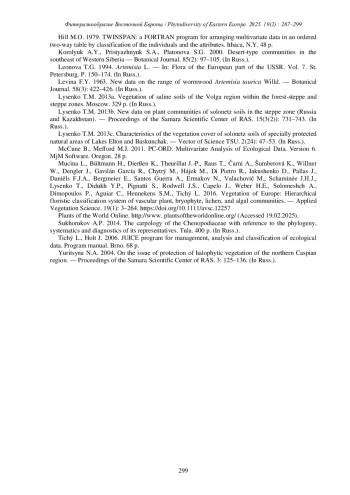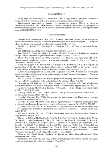 13. [Lysenko] Лысенко Т.М. 2013b. Новые данные о растительных сообществах солонцовых почв в степной зоне (Россия и Казахстан). - Известия Самар. науч. центра РАН. 15(3(2)): 731-743.
