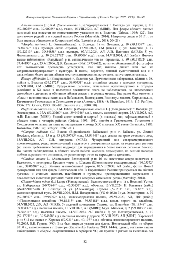 28. [Philippov et al.] Филиппов Д.А., Комарова А.С., Левашов А.Н. 2024. К флоре малых городов и районных центров Вологодской области: Тарногский Городок. - Полевой журнал биолога. 6(4): 326-342. DOI: 10.52575/2712-9047-2024-6-4-326-342 EDN: NJZVEI