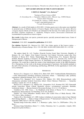 16. [Muchnik] Мучник Е.Э. 2017. Лихенологические исследования в Брянской области: история, результаты и перспективы. - Бюллетень Брянского отделения РБО. 3(11): 8-14. EDN: ZOWCNX