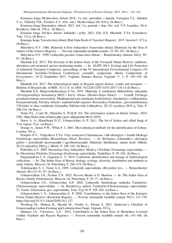 25. [Pchiolkin] Пчелкин А.В. 2005. Сравнение флоры лишайников Москвы и Приокско-Террасного заповедника // Экосистемы Приокско-Террасного биосферного заповедника. Пущино. С. 95-104.