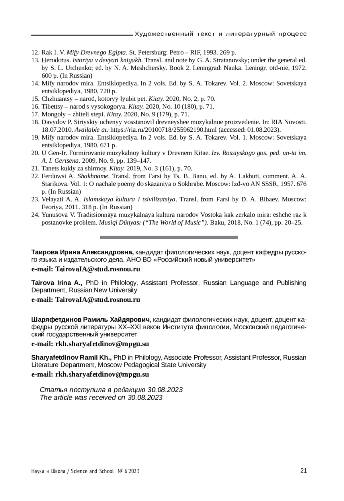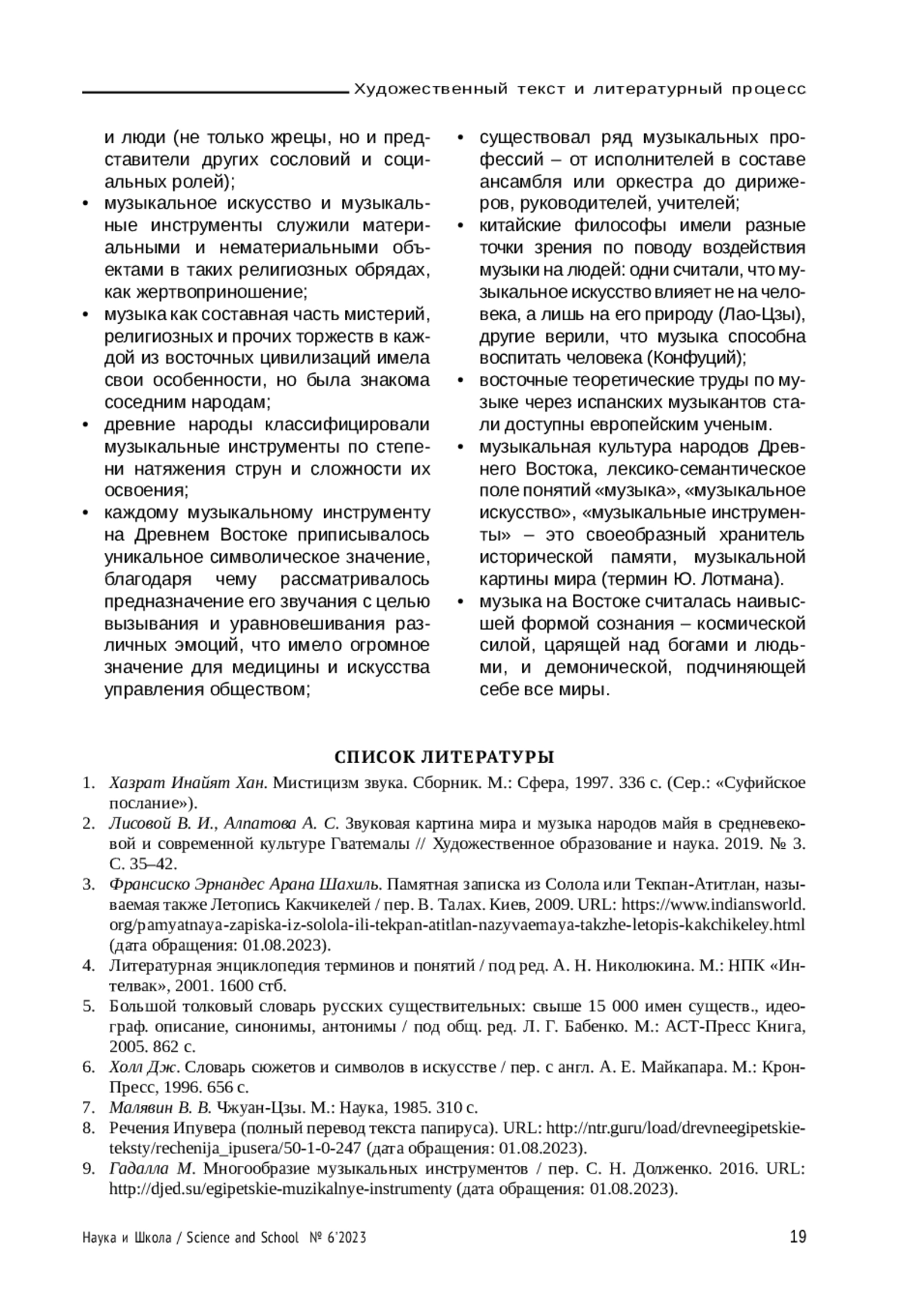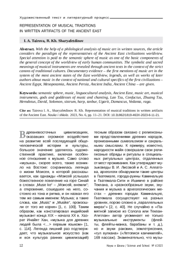 Таирова И.А., Шаряфетдинов Р.Х. РЕПРЕЗЕНТАЦИЯ МУЗЫКАЛЬНЫХ ТРАДИЦИЙ В ПИСЬМЕННЫХ ПАМЯТНИКАХ ДРЕВНЕГО ВОСТОКА
