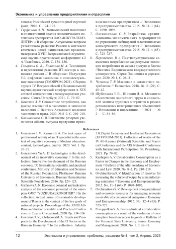 8. Перепёлкин В. А. Постиндустриальное совместное потребление как результат эволюции потребления на основе доступа к благам //Вестник Воронежского государственного университета. Серия: Экономика и управление. 2020. № 1. С. 26-31. EDN: BHDRMS